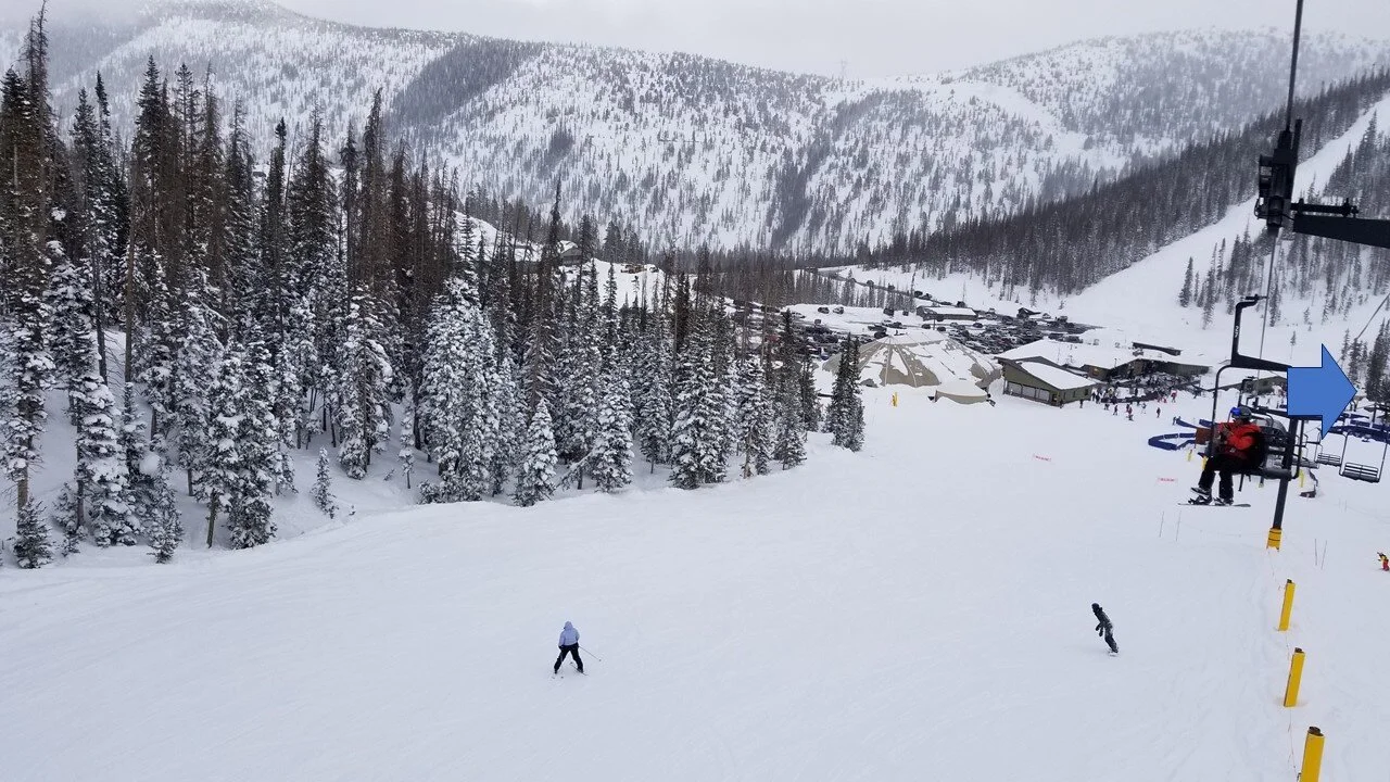 Monarch has one sole base area, with 3 main lift lines to cover a semi-circle, providing access to a lot of terrain for such a “small” area.