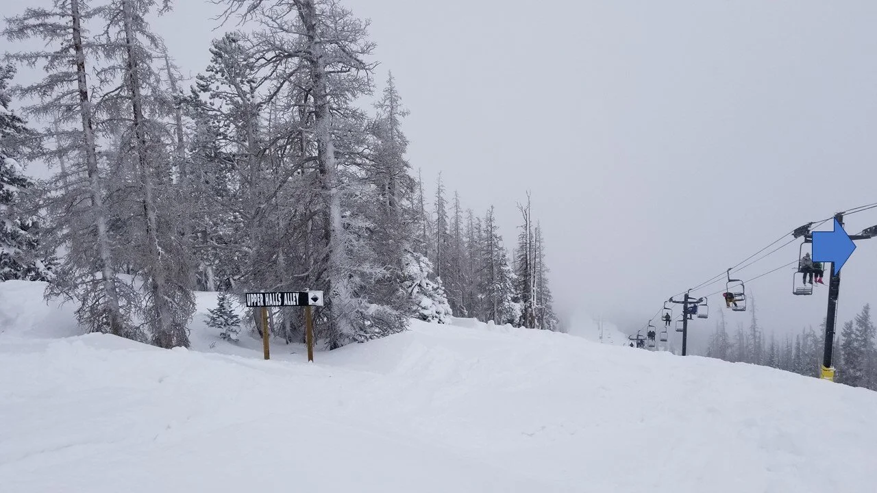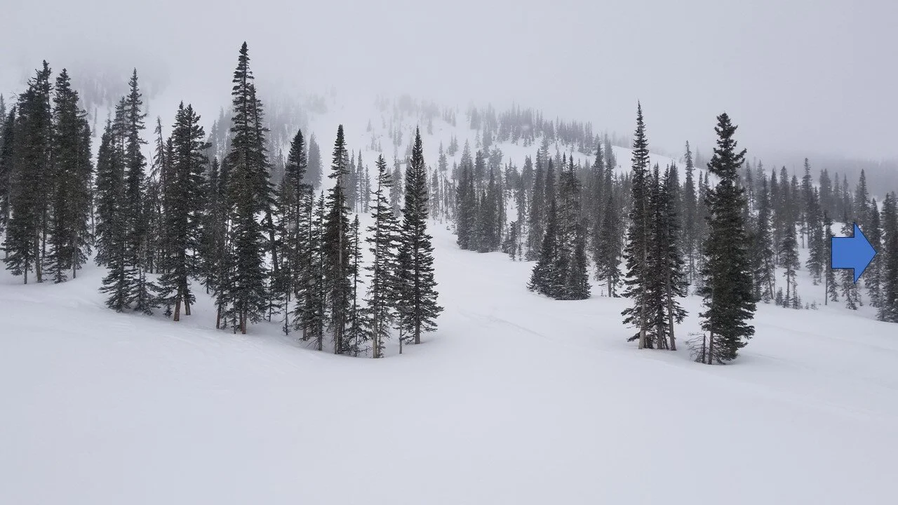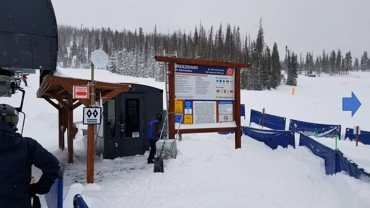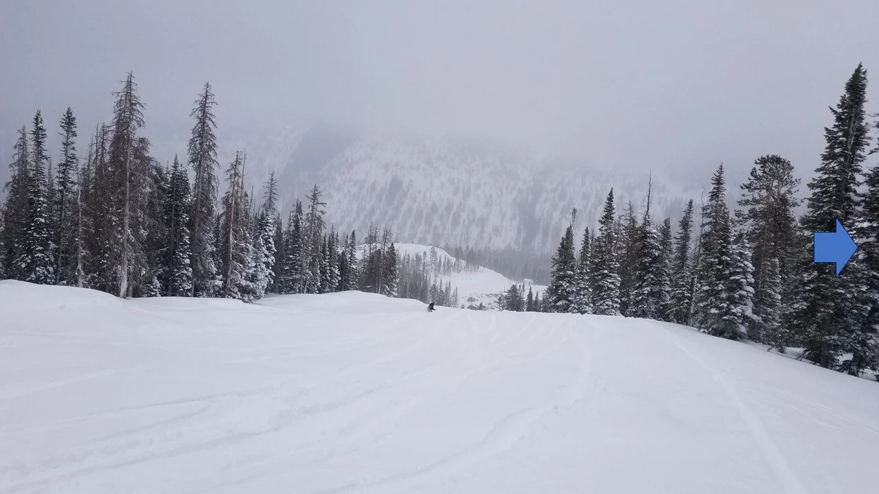 The high point is not a single peak, but rather a ridge, a segment of the spine in the great divide, with most of the slope facing east and north, with some southern-facing component under the Breezeway chair.