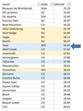 Latitudes of select ski mountains