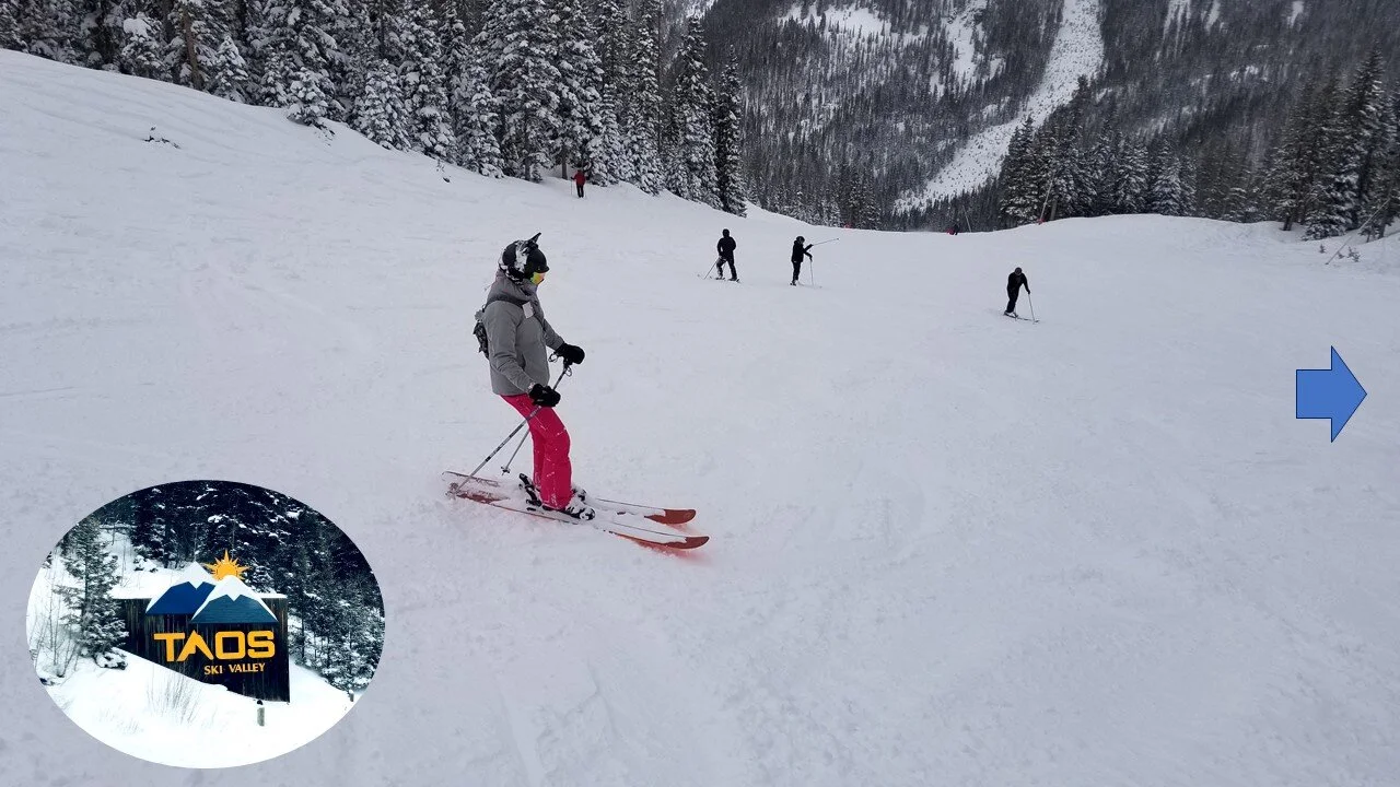 Taos elevation begins at ~9200 ft and tops out around 12,500 (source TaosSkiValley.com). The back bowl under lifts 4 and 7 is all above 10,000, with mostly northern-facing terrain.
