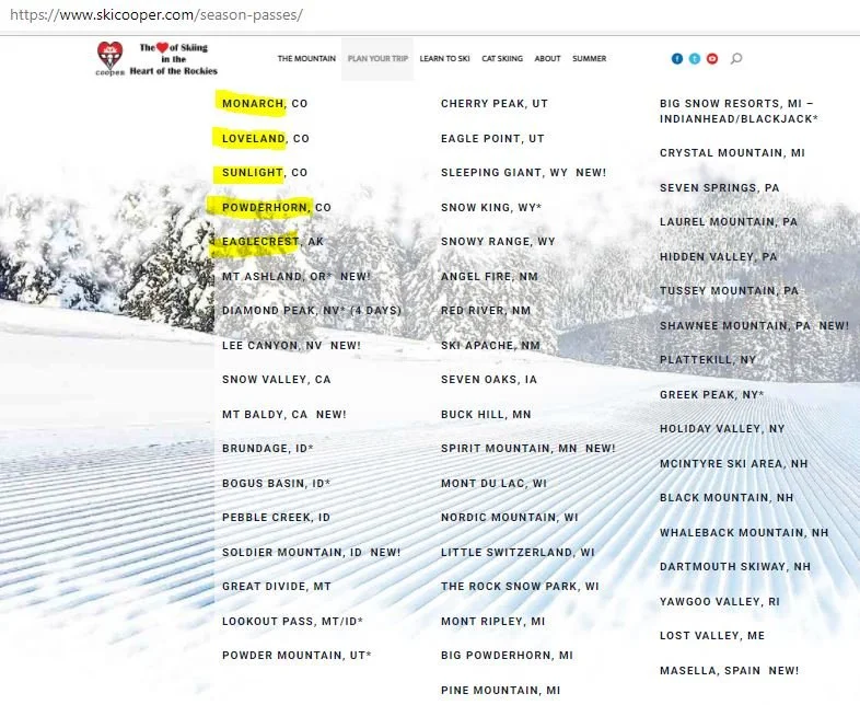 The cooper pass includes access to 48 other locals' mountains, including many in the western rockies. Most pass partners give 3 days, which is enough for our budget, especially if there are multiple mountains within driving distance of a big airport. 5 in Colorado, several in Utah (Including POWMOW), plenty in Idaho, and some intriguing options in the southwest desert states of New Mexico, Arizona, and Nevada. This year we opted for all of the above in Colorado, plus ALASKA. We had plans to go to Utah/Idaho, but the snow up there was pretty thin. and Colorado has been getting the better snow. We’ll put 9 days on the pass this year, not bad considering the low price for underdog mountains.