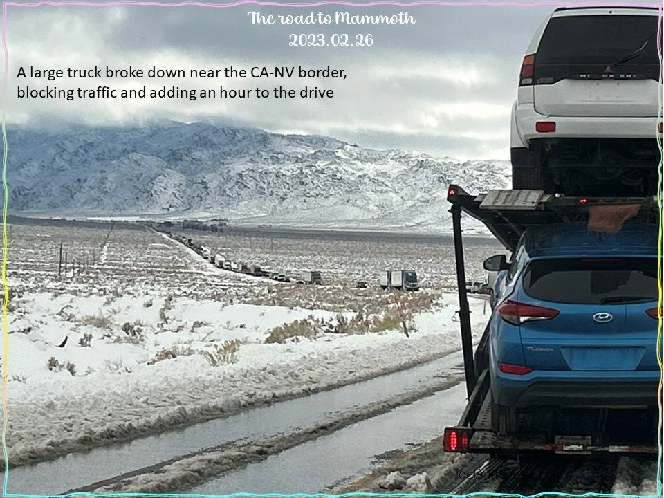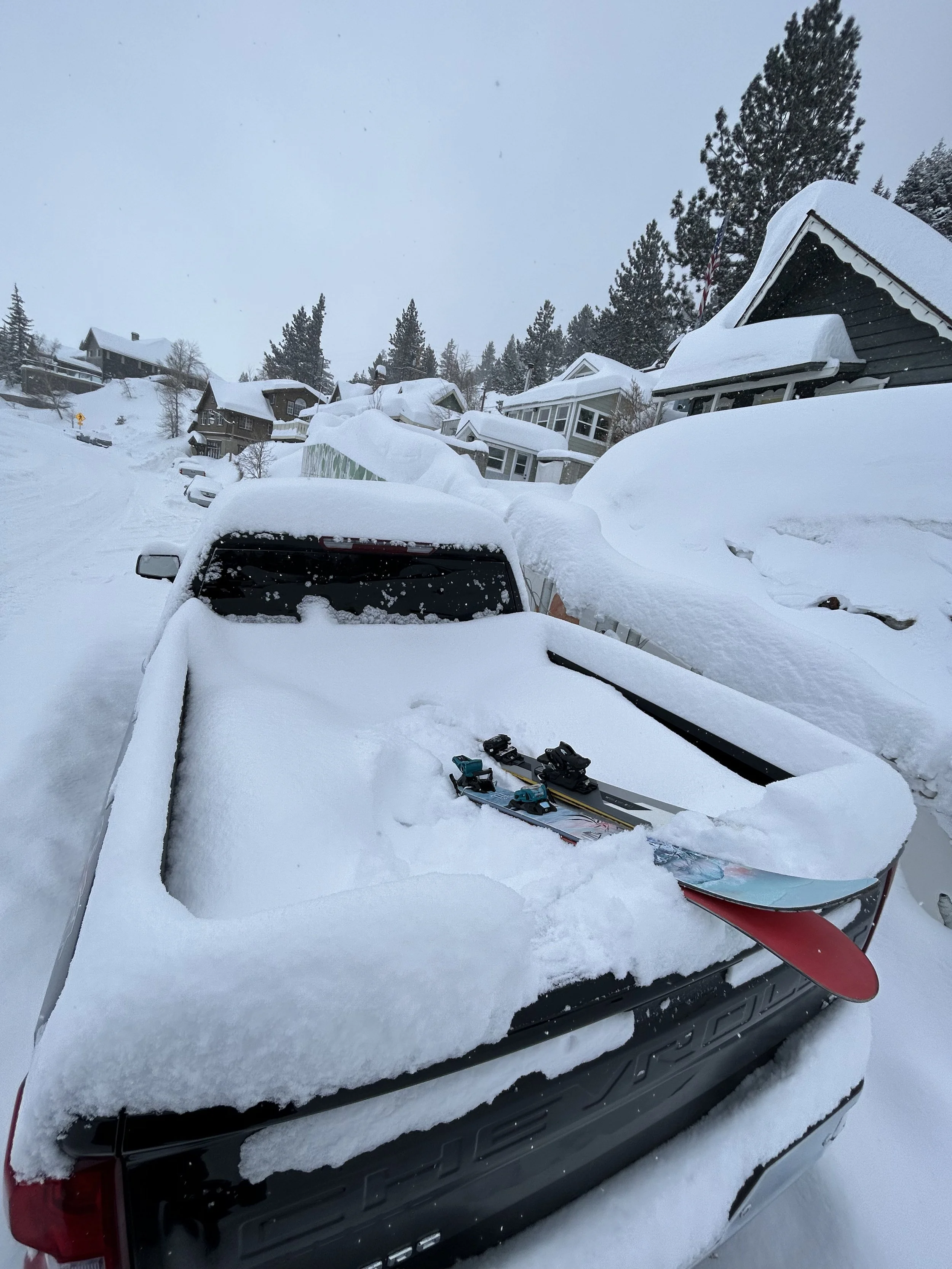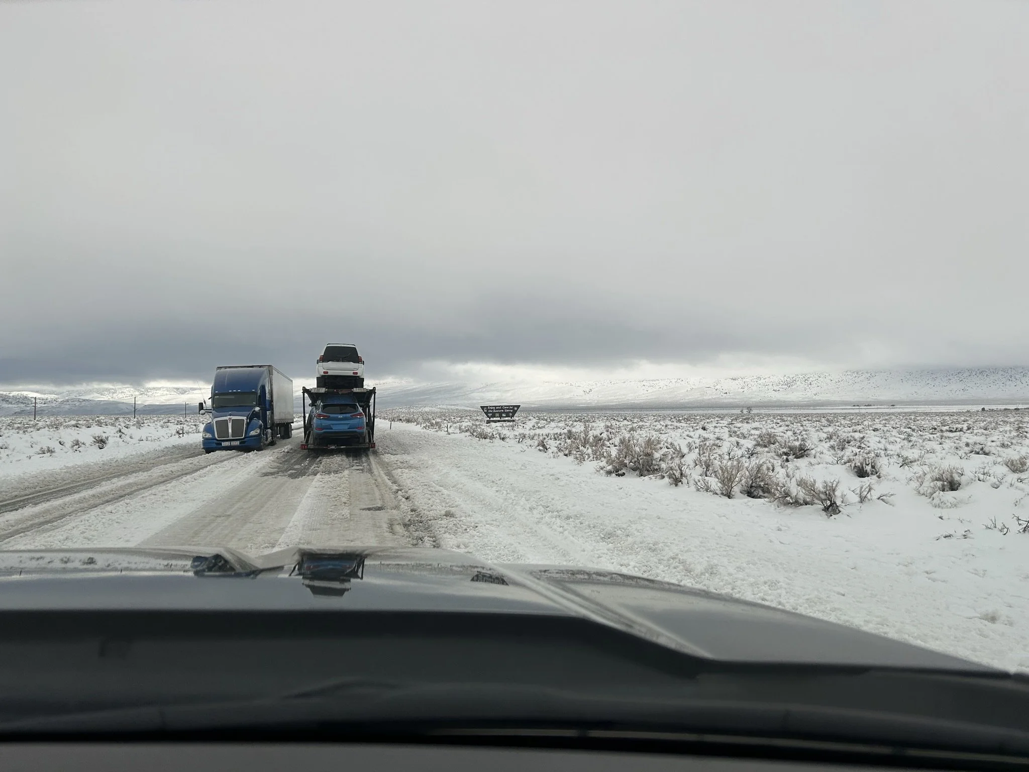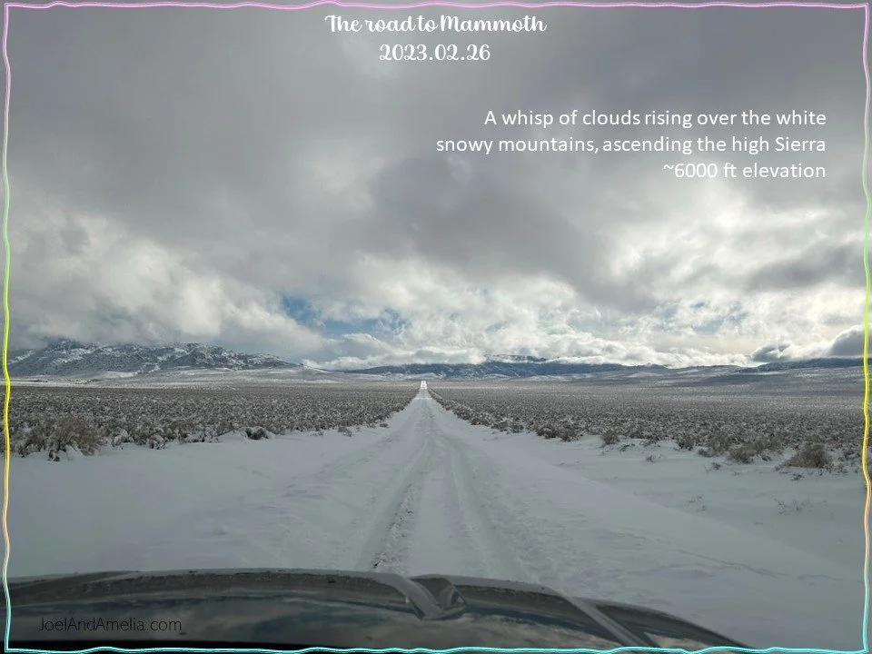 The morning of February 26, skies cleared for about 6 hours between consecutive blizzards. Our goal was to leave town (Reno) early enough catch this window of clear passage and even arrive in time for an afternoon of skiing on the same day.