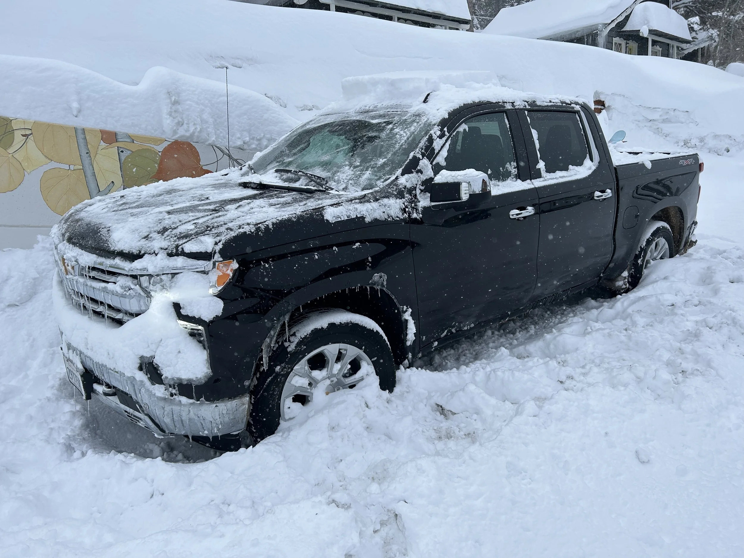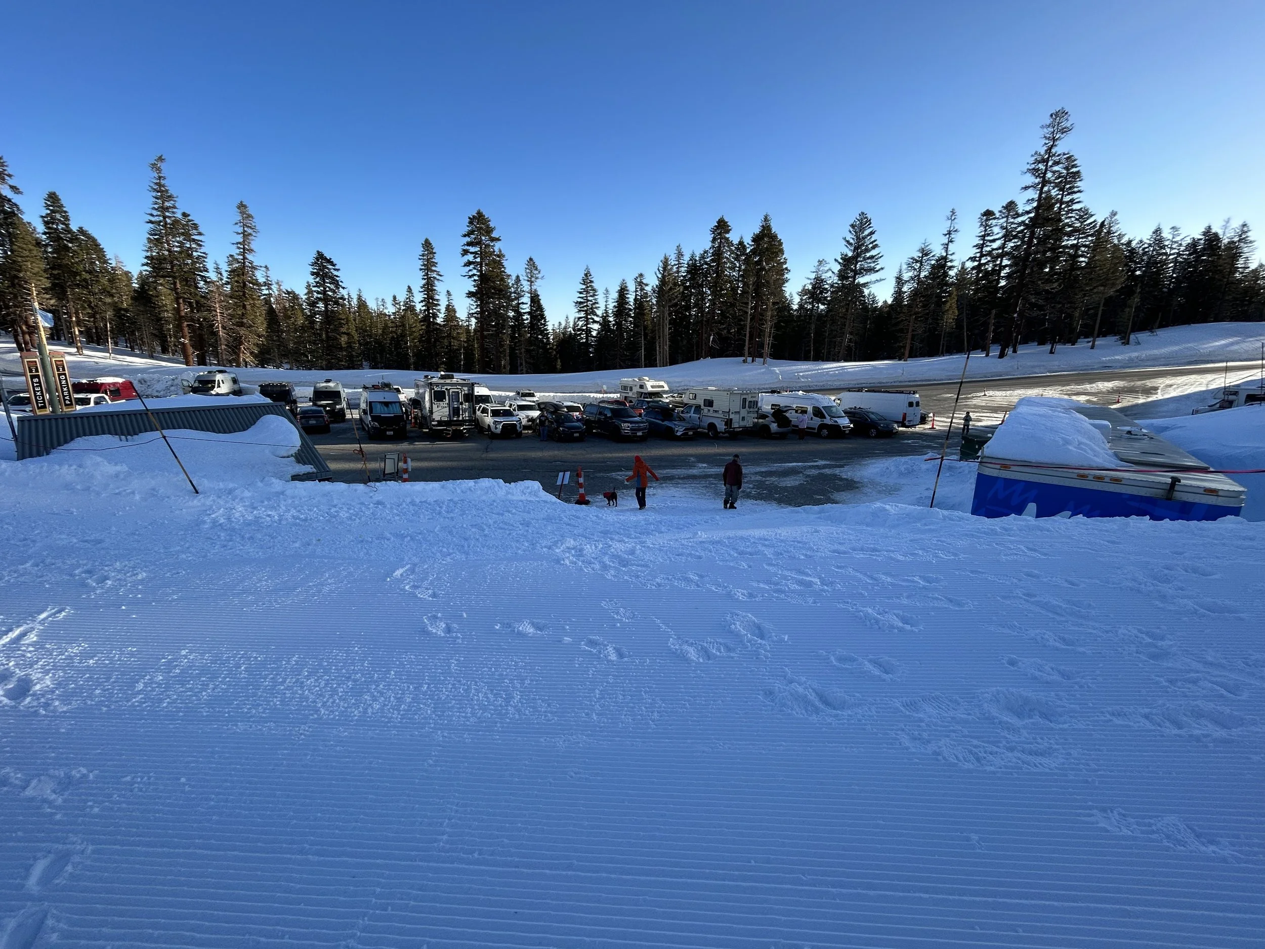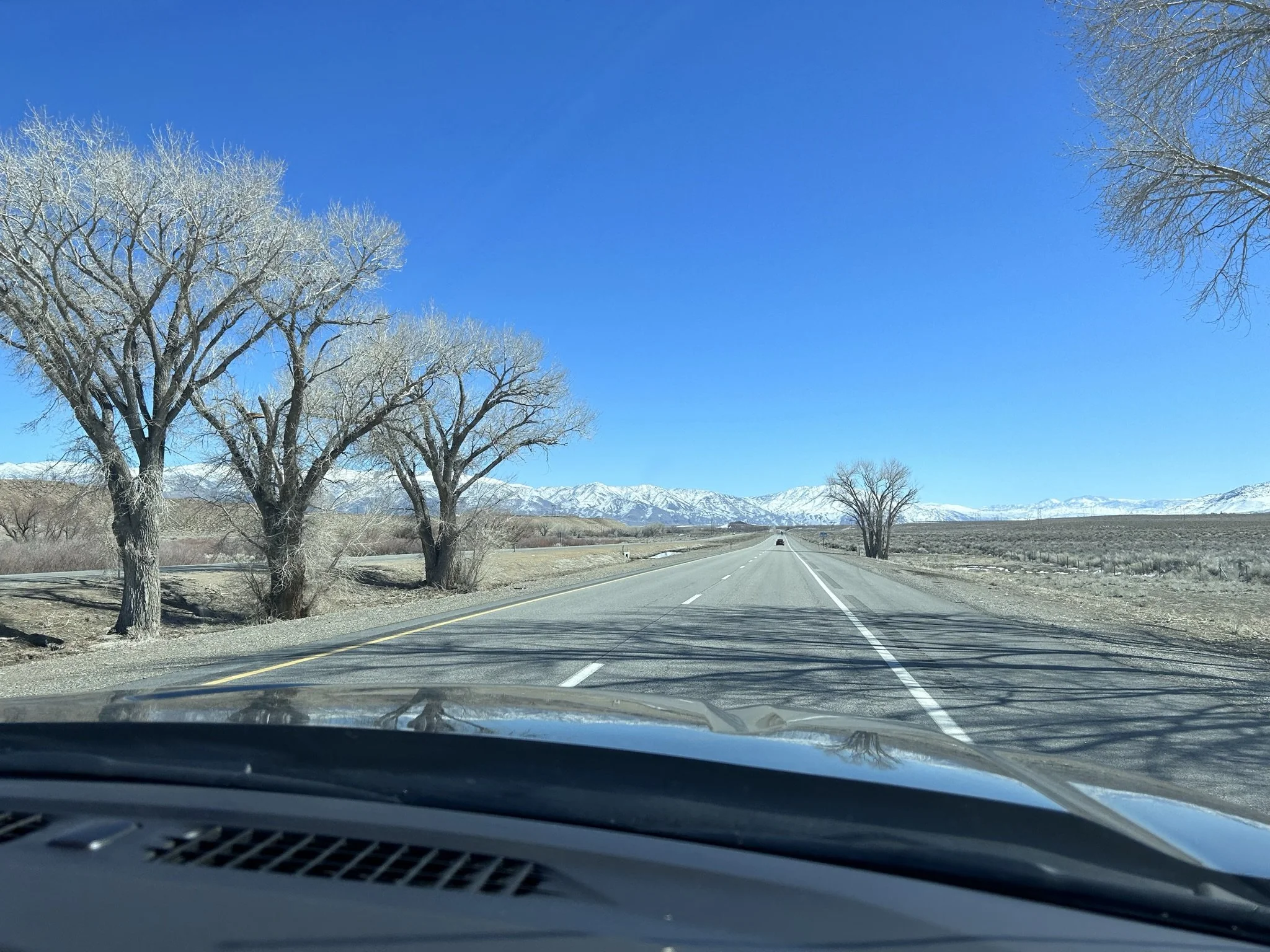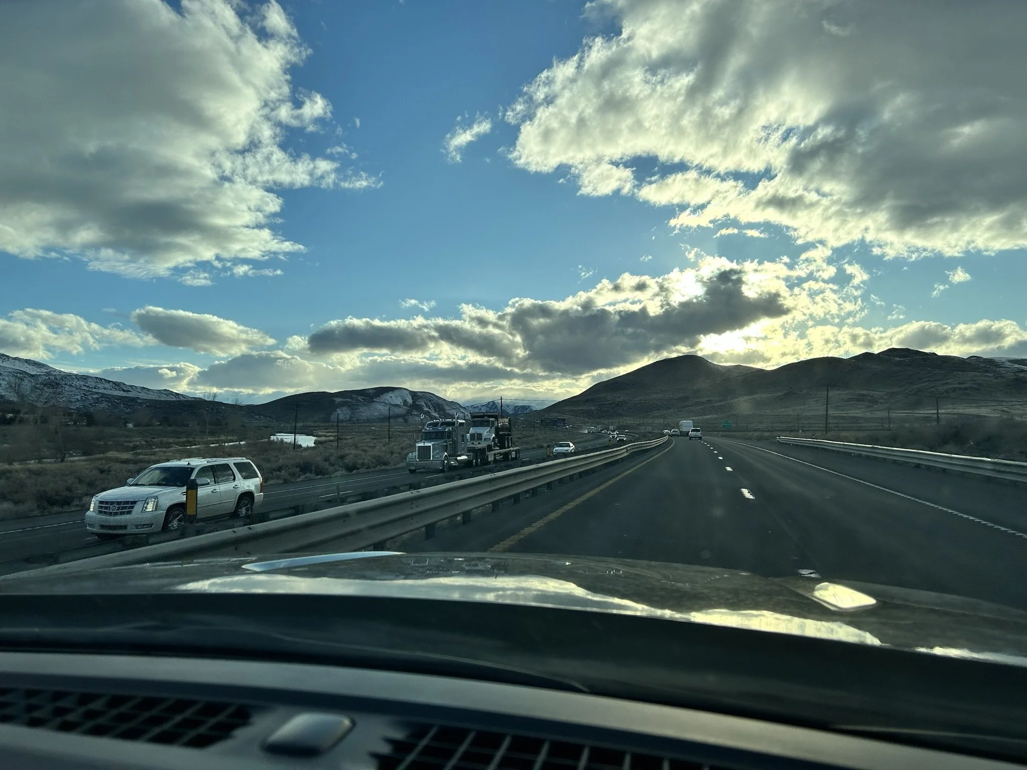 The morning of February 26, skies cleared for about 6 hours between consecutive blizzards. Our goal was to leave town (Reno) early enough catch this window of clear passage and even arrive in time for an afternoon of skiing on the same day.