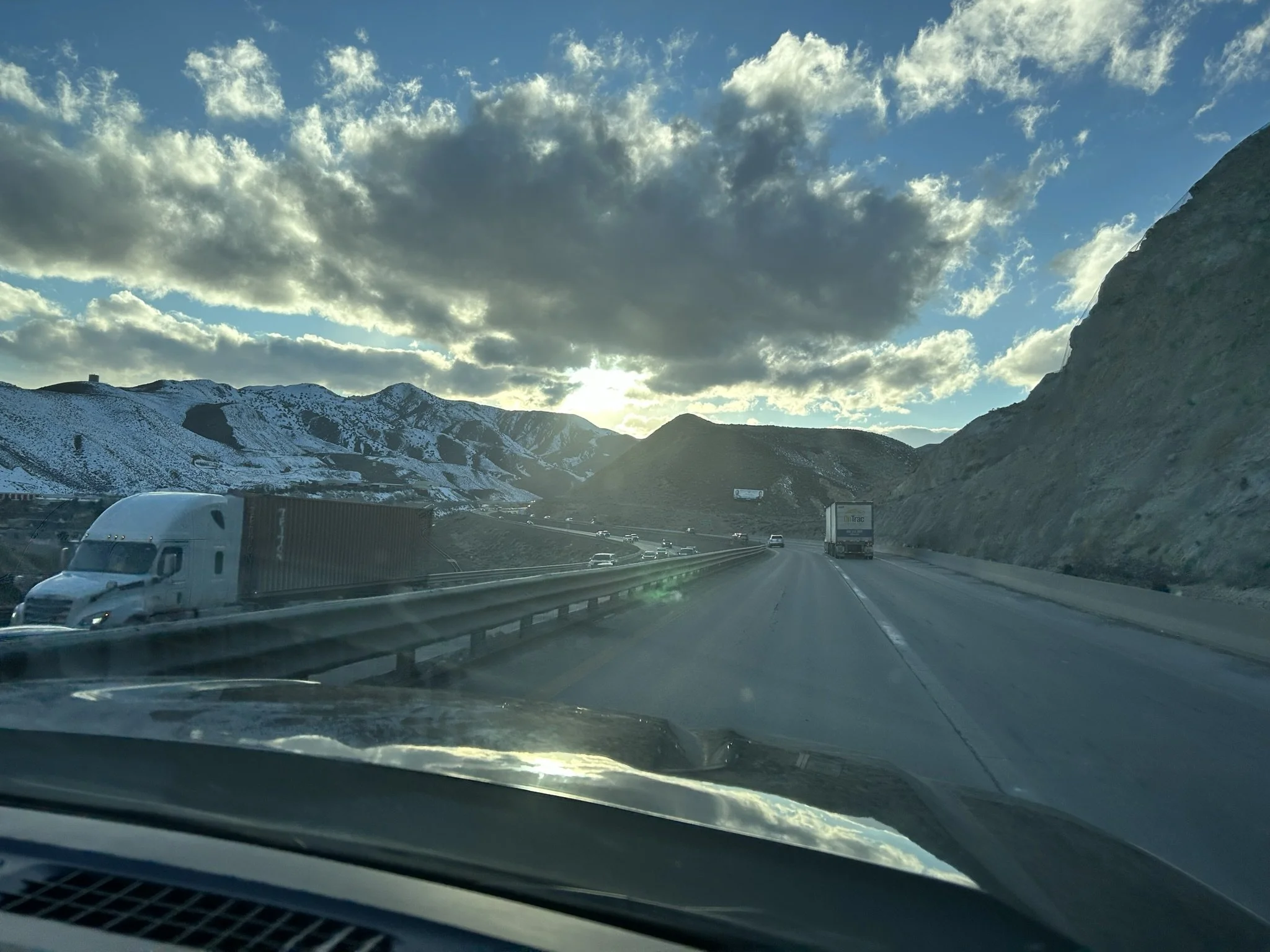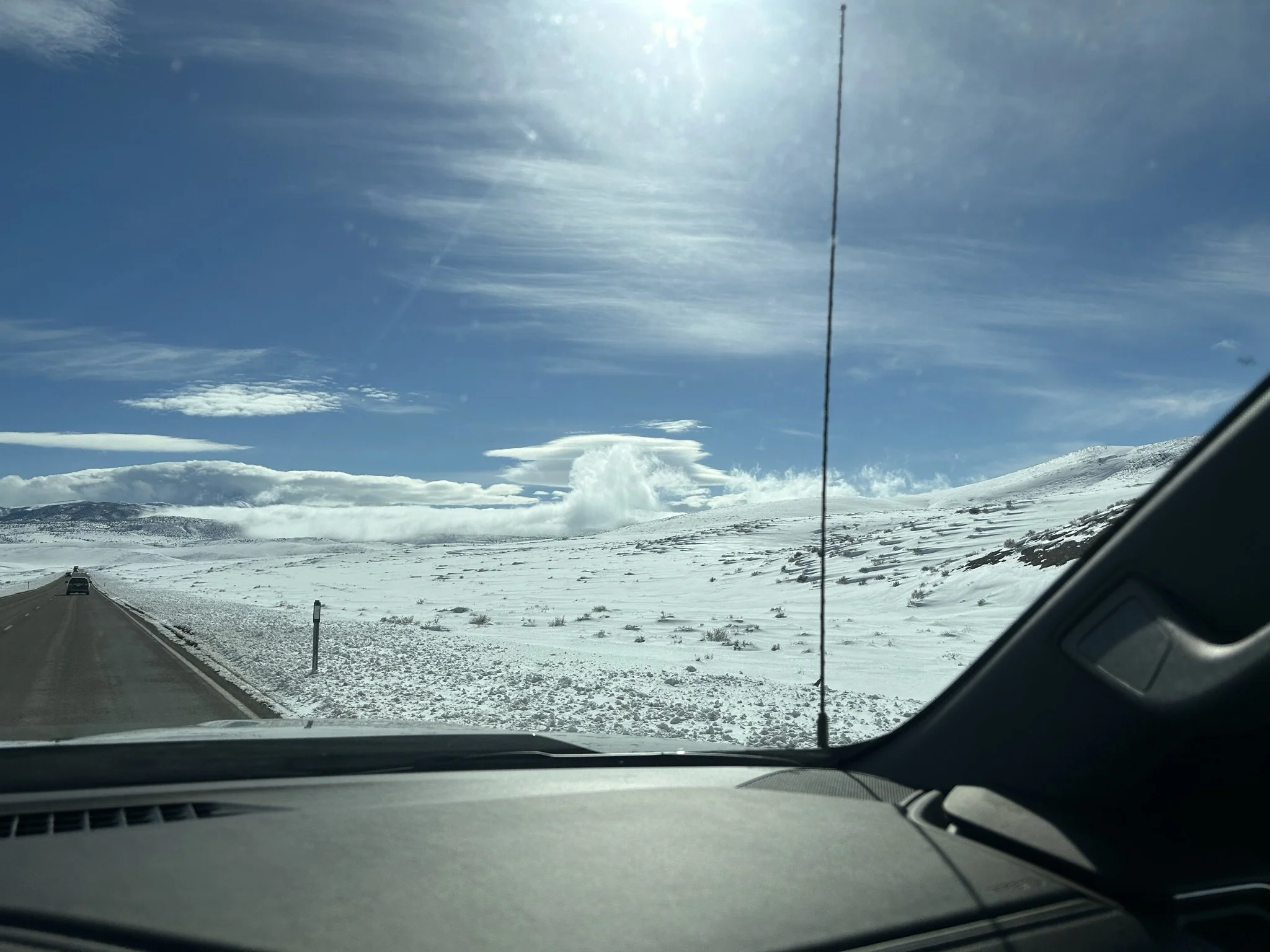 fortunately, the storm intensity didn’t pick up quite as early as I had expected, and we were able to make it up the treacherous mountain grades before sunset and before blizzard land fall.