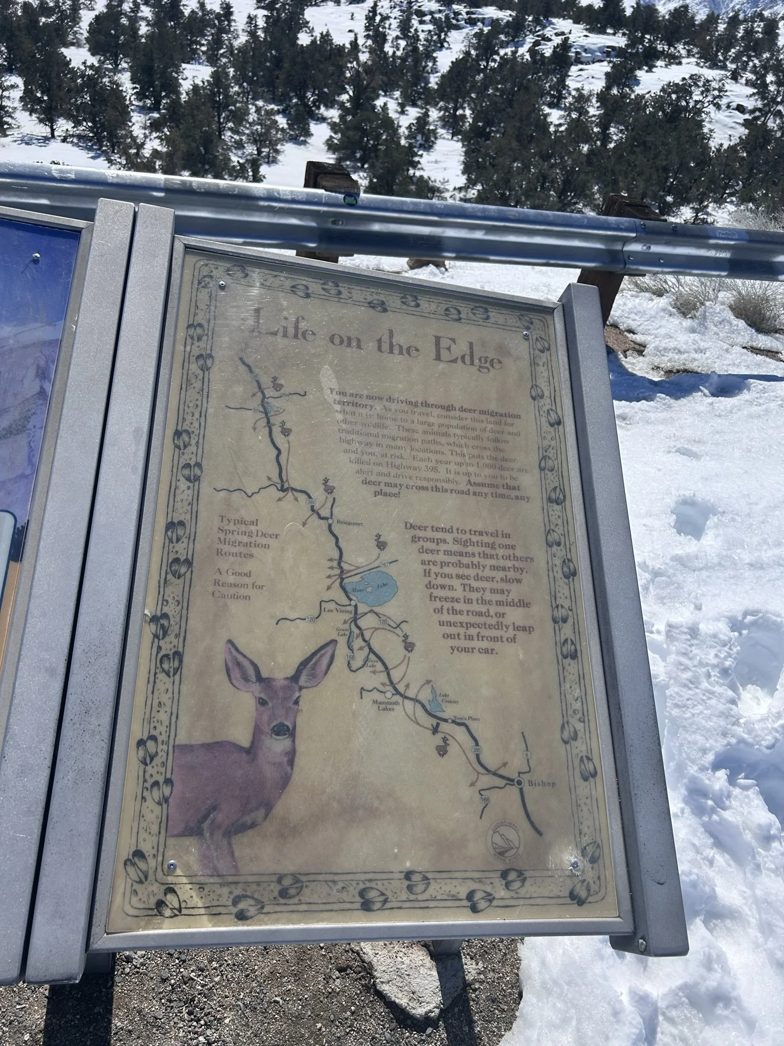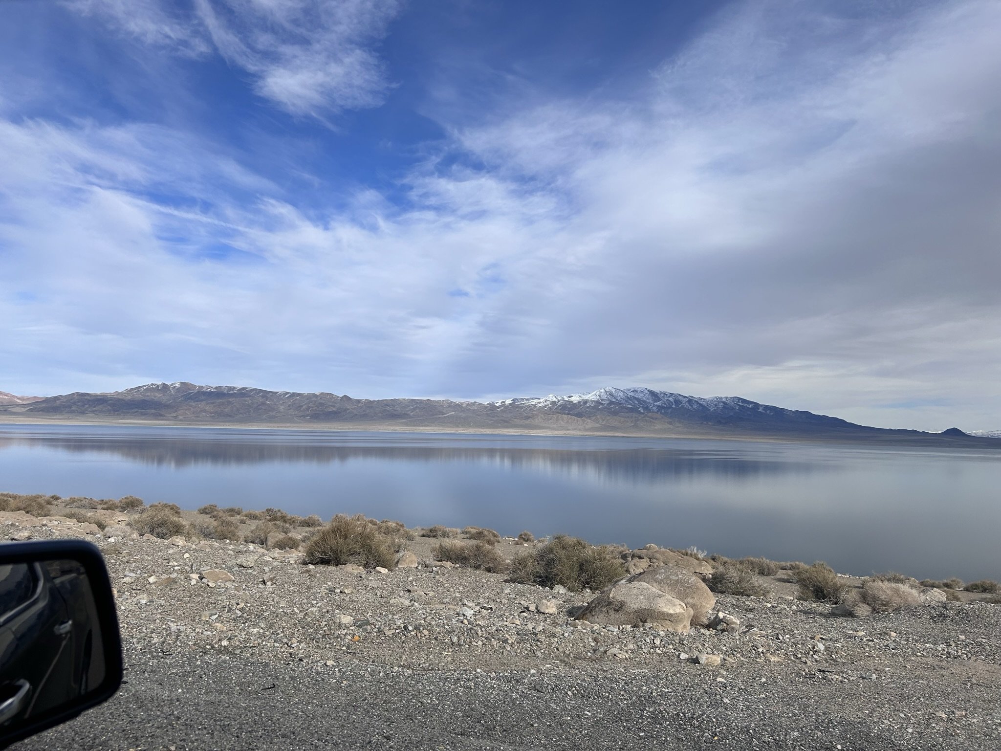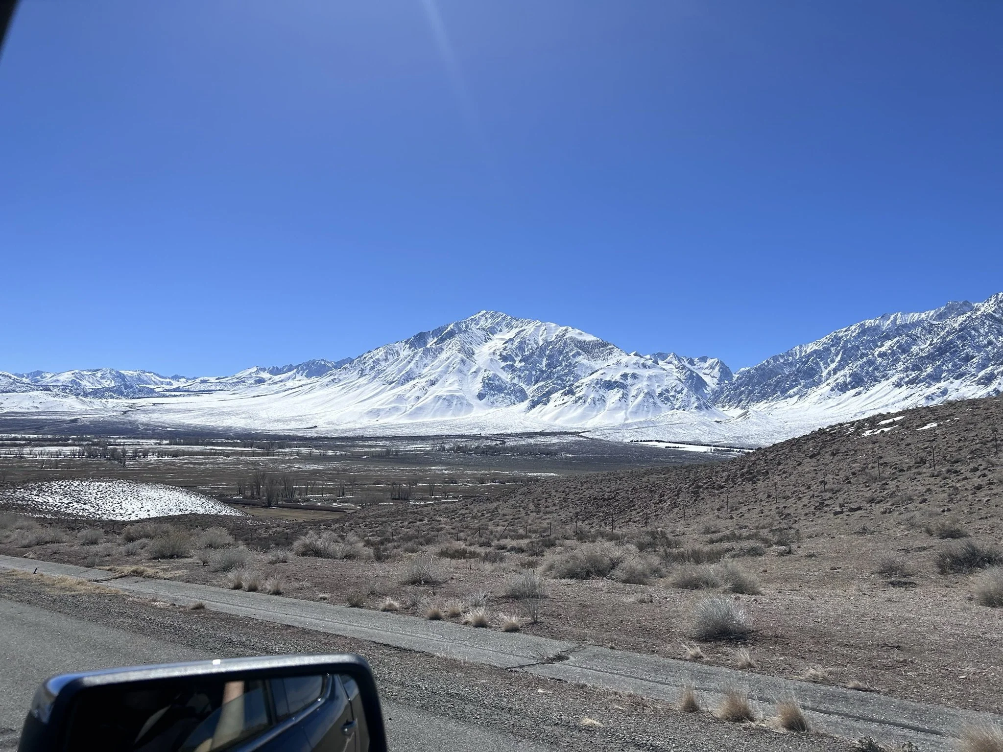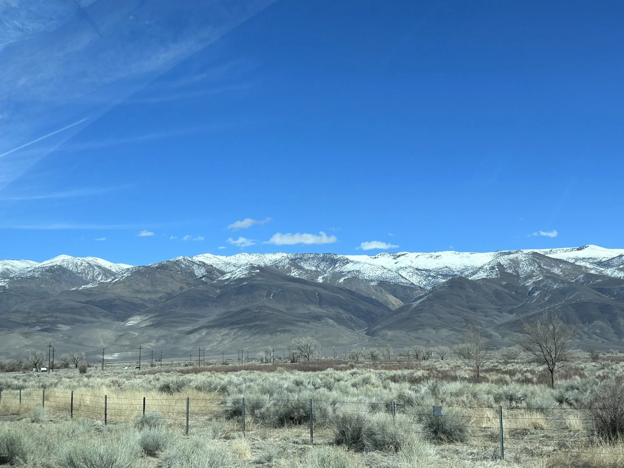 Most of the route was through the lower lands of Nevada (~4,000 to 4,500 feet elevation). As we approached the California state line and began to gain elevation, we saw the sights of the next reel….