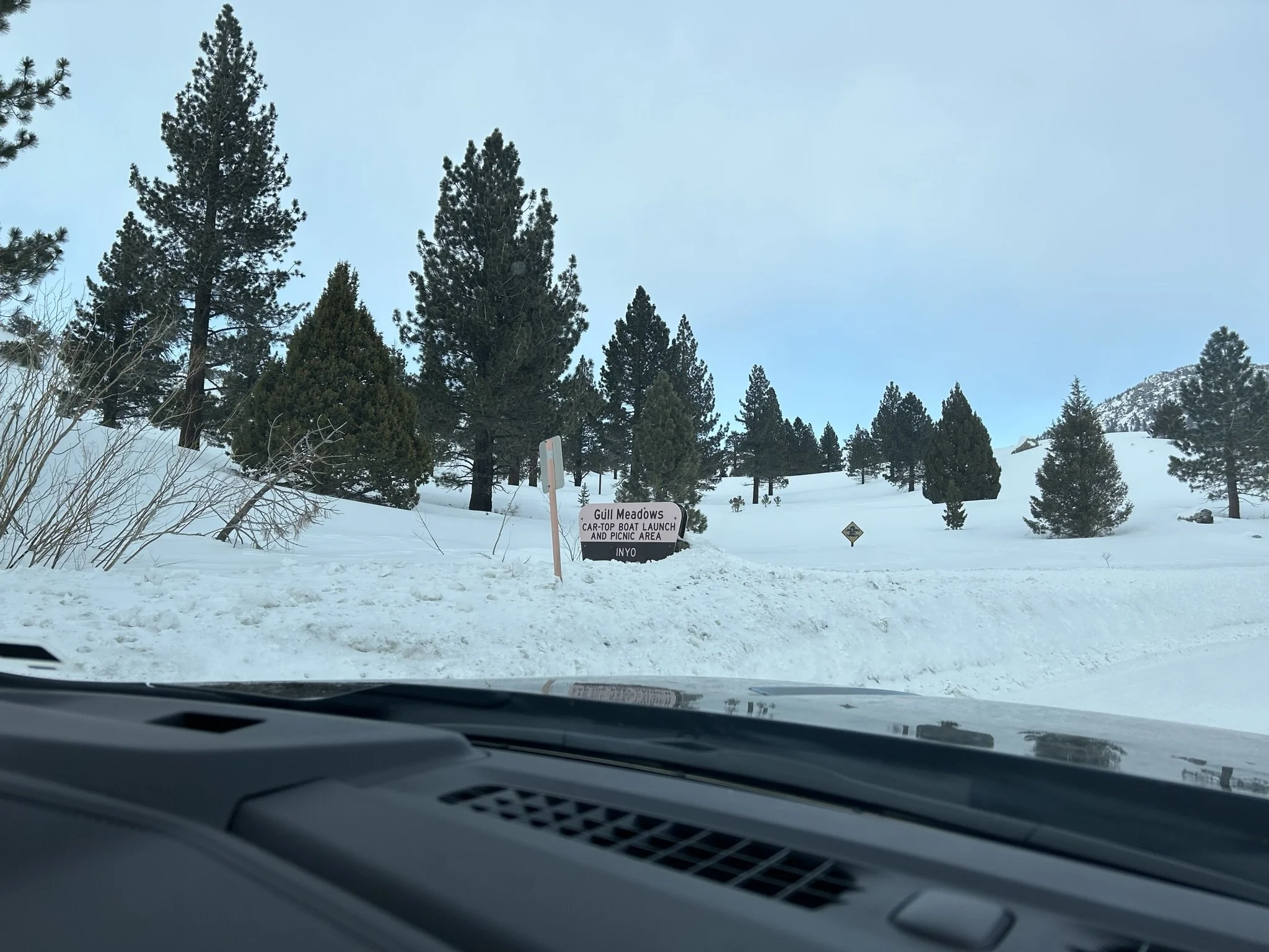 This plan got jerked around by United Airlines, who failed to deliver our bags on the last flight from DEN to RNO on the same day as the flight. Hence, we drove into the high Sierra region as the 2nd of 3 storms was taking hold…