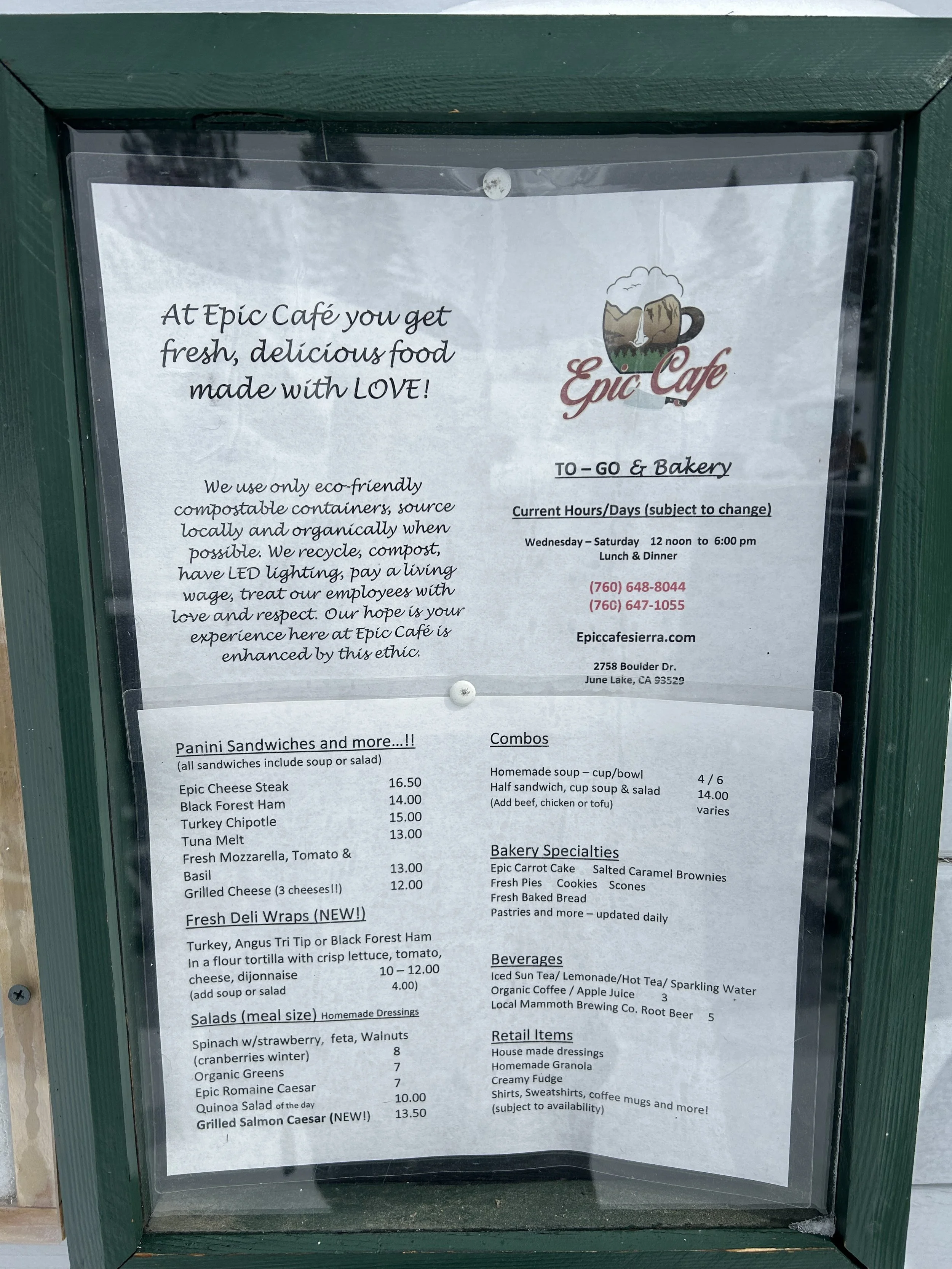 During this extended week, we dealt with flight cancelations, bag losses, road closures, three powerful blizzards, screaming fast coastal winds, high-elevation snowfall by the foot, and a wonderful comfortable small town at June Lake.
