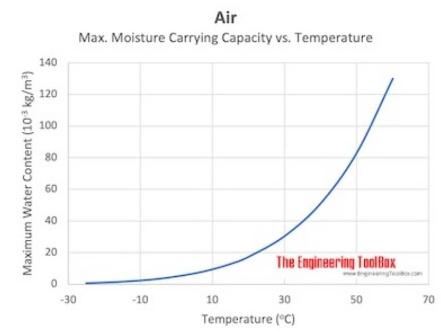 Maximum (100% relative humidity) moisture carrying capacity of air. source: Engineering Toolbox