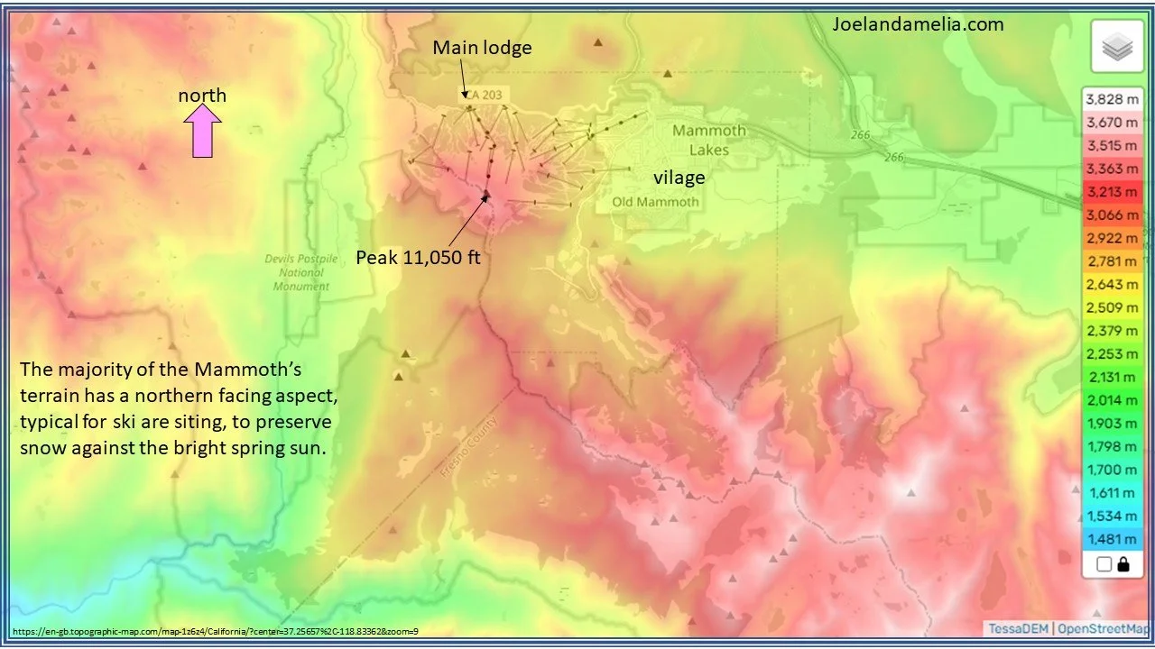 Mammoth’s most impressive single stat is likely its OED (Orographic Elevation Difference, see above).