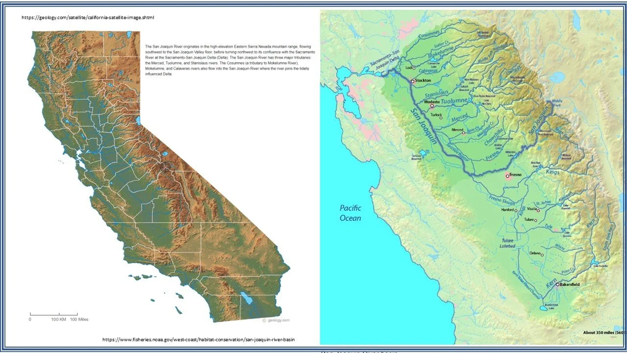 When winter storms blow in across the Pacific coast, the lowlands near Fresno and Modesto see rain and humidity and moist air in general. Meanwhile, Sierra peaks over 14,000 feet lie just to the east. The east-bound force of these winds slam clouds of moisture abruptly against the Sierra ridge driving a sudden uphill rise of thousands of vertical feet over just a few miles. These massive storm clouds expand into the lower pressure upper atmosphere, reject heat to the alpine environment, and are now like a saturated sponge.