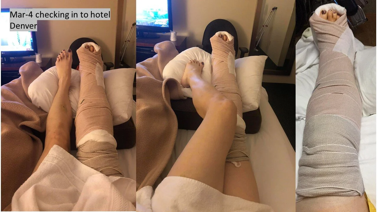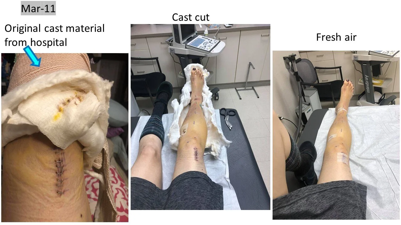Mar-11, first visit to orthopedic doctor in Greenville. Doctor’s first order, get rid of that wrapped hospital cast, replace with high-quality ortho-boot