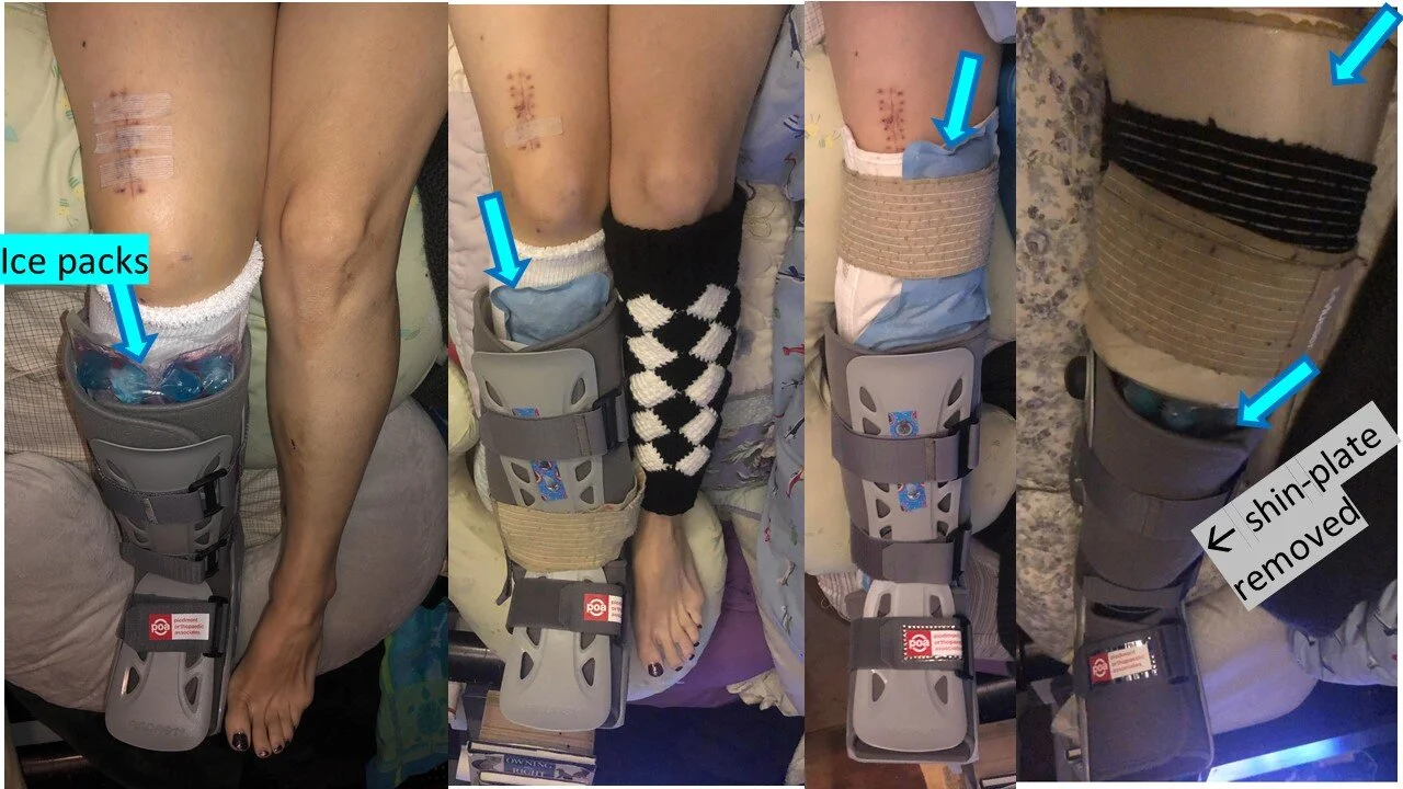 we used a regular rotation of ice packs, inserted into the ortho-boot, to help control pain