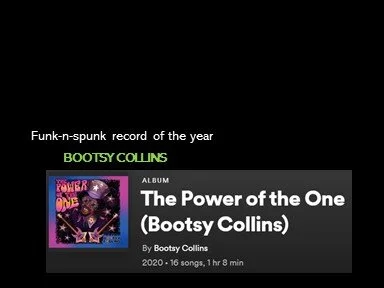 2020 shout-outs Dec 31 Written By Joel Hall or…2020 Spunk Awards >>NOVA TWINS Taxi on Spotify >>SAINT AGNES The Family Strange on SpotifySaint Agnes - YouTube >>HYKN new record on Spotify >>SCARLET new record on Spotify >>7KINGZ Reign on Spotify >>BOOTSY COLLINS The Power of One on Spotify >>WAR ON WOMEN new record on Spotify >>LAUREN STRANGE The Solution on Spotify >>PINS Hot Slick on Spotify >>SALVATION JAYNE Remixes on Spotify >>Paralyzed on Spotify >>HHNF playlist on SpotifyHell Hath No Fury Records | Facebook Joel Hall